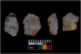 | Description / विवरण | There are n 4 flake cores. All of them are fully fluted flake cores without any trace of crested ridge flakes. Some are tapering at one end and some have sharp edges. |