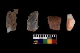| Description / विवरण | There are n 4 Flake tool; There are multidirectional irregular scar pattern on them. few have blunt edges, Some of them are tapering |
