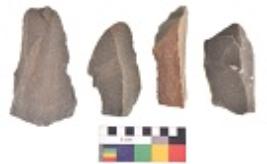 | Description / विवरण | There are n 4 utilized flake cores. There are multidirectional irregular dominant scar pattern on both dorsal and ventral face of the flake cores. Three are tapering at one end and one has sharp edges. |