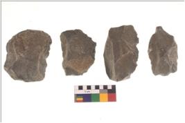 | Description / विवरण | There are n 4 flakes tool; there are flakes tool with prominent flaking marks. It made up of a large flakes with sides trimmed. |