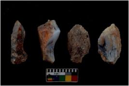 | Description / विवरण | There are n 4 flake cores. All of them are fully fluted flake cores without any trace of crested ridge flakes. Some are tapering at one end. Some have flat base and few have round edges. |