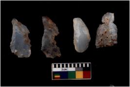 | Description / विवरण | There are n 4 flakes tool; there are large flakes with sides trimmed, Marks of secondary flaking are present on the both the faces. |