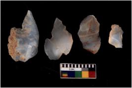 | Description / विवरण | There are n 4 Flake tool; There are multidirectional irregular scar pattern on them. few have blunt edges, Some of them are tapering |