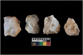 | Description / विवरण | There are n 4 utilized flake cores. There are multi directional irregular scar pattern on them. Three have blunted edges and one has round edge. |