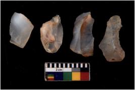| Description / विवरण | There are n 4 flakes tool; there are large flakes with sides trimmed, Marks of secondary flaking are present on the both the faces. |