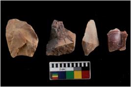 | Description / विवरण | There are n 4 of utilized worked cores. They show multidirectional irregular scar pattern. Two are tapering on one end. |