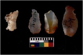 | Description / विवरण | There are n 4 flakes tool; there are large flakes with sides trimmed, Marks of secondary flaking are present on the both the faces. One is pointed functional top. |