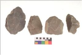| Description / विवरण | There are n 4 flakes tool; there are flakes tool with prominent flaking marks. It made up of a large flakes with sides trimmed. It is rectangular in shaped. |