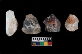 | Description / विवरण | There are n 4 utilized flake cores. There are multi directional irregular scar pattern on them. One is tapering at one end and three have blunted edges. |