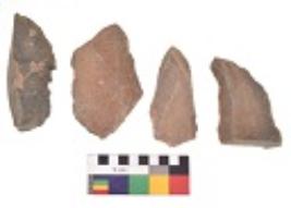 | Description / विवरण | There are n 4 utilized flake cores. There are multidirectional irregular dominant scar pattern on both dorsal and ventral face of the flake cores. Two are tapering at one end and two have sharp edges. |