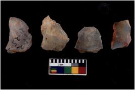 | Description / विवरण | There are n 4 Flake tool; There are multidirectional irregular scar pattern on them. few have blunt edges, Some of them are tapering |