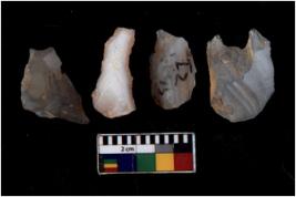 | Description / विवरण | There are n 4 Flake tool; There are multidirectional irregular scar pattern on them. few have blunt edges, Some of them are tapering |