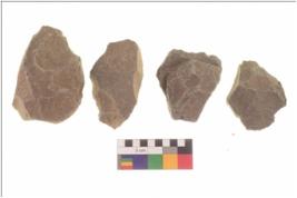 | Description / विवरण | There are n 4 flakes tool; there are large flakes with sides trimmed, Marks of secondary flaking are present on the both the faces. The dorsal is relatively flat. |