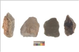 | Description / विवरण | There are n 4 flakes tool; there are multidirectional irregular scar pattern on them; made of short flakes and all four have tapering edges. |