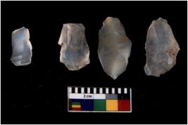 | Description / विवरण | There are n 4 Flake tool; There are multidirectional irregular scar pattern on them. few have blunt edges, Some of them are tapering |