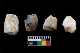 | Description / विवरण | There are n 4 utilized flake cores. There are multi directional irregular scar pattern on them. Three have flat base and one has blunted edge. |