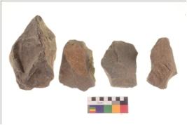 | Description / विवरण | There are n 4 flakes tool; there are large flakes with sides trimmed, Marks of secondary flaking are present on the both the faces. The dorsal is relatively flat. |