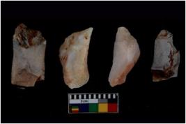 | Description / विवरण | There are n 4 flake cores. All of them are fully fluted flake cores without any trace of crested ridge flakes. Some are tapering at one end and some have sharp edges. |