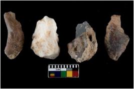 | Description / विवरण | There are n 4 utilized flake cores. There are multi directional irregular scar pattern on them. Three are tapering at one end and one has sharp edge. |