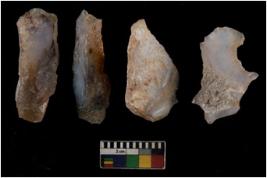 | Description / विवरण | There are n 4 utilized flake cores. There are multi directional irregular scar pattern on them. Three are tapering at one end and one has sharp edge. |