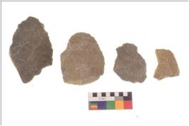 | Description / विवरण | There are n 4 flakes tool; there are large flakes with sides trimmed, Marks of secondary flaking are present on the both the faces. The dorsal is relatively flat. |