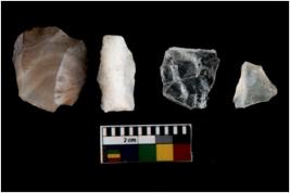 | Description / विवरण | There are n 04 flakes; 3 quartz and 1 is chert verity. all of them are flat base and two of them are sharp edges. |