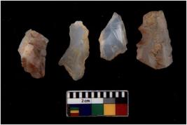 | Description / विवरण | There are n 4 flakes tool; there are large flakes with sides trimmed, Marks of secondary flaking are present on the both the faces. |