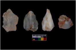 | Description / विवरण | There are n 4 flake cores. All of them are fully fluted flake cores without any trace of crested ridge flakes. Some are tapering at one end and some have sharp edges. |