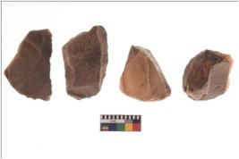 | Description / विवरण | There are n 4 utilized flake cores. There are multidirectional irregular scar pattern on both dorsal and ventral face of the flake cores. One has sharp edges and three have blunted edges. |