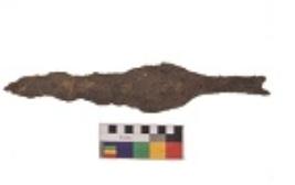 | Description / विवरण | Specimen with flat, leaf-shaped body having point at one end. It is having uniform thickness, and highly corroded surface. |