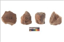 | Description / विवरण | There are n 4 utilized flake cores. There are multidirectional irregular scar pattern on both dorsal and ventral face of the flake cores. One has sharp edges and three have blunted edges. |