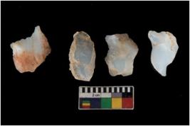 | Description / विवरण | There are n 4 utilized flake cores. There are multi directional irregular scar pattern on them. Two have sharp edges and two have blunted edges. |