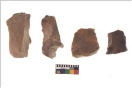 | Description / विवरण | Specimen of flake tools with prominent flaking marks. They are made up of a short flakes with sides trimmed. |