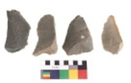 | Description / विवरण | There are n 4 utilized flake cores. There are multidirectional irregular dominant scar pattern on both dorsal and ventral face of the flake cores. One has sharp edges and three have blunted edges. |