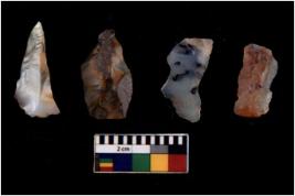 | Description / विवरण | There are n 4 flakes tool; there are large flakes with sides trimmed, Marks of secondary flaking are present on the both the faces. One is pointed functional top. |