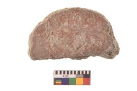 | Description / विवरण | Specimen of ground disc hopscotch made from a red ware. It has jagged edges with sign of chipping. It is rounded in shape. |