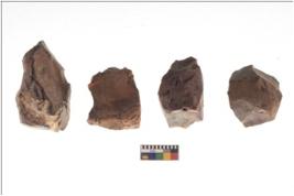 | Description / विवरण | There are n 4 utilized flake cores. There are multidirectional irregular scar pattern on both dorsal and ventral face of the flake cores. One has sharp edges and three have blunted edges. |