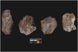 | Description / विवरण | There are n 4 flake cores. All of them are fully fluted flake cores without any trace of crested ridge flakes. Some are tapering at one end. Some have flat base and few have round edges. |