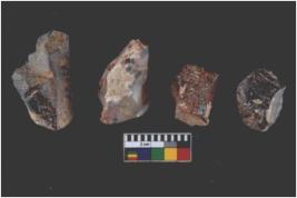 | Description / विवरण | There are n 4 flake cores. All of them are fully fluted flake cores without any trace of crested ridge flakes. Some have flat base. Some have blunted edges and few have round edges. |