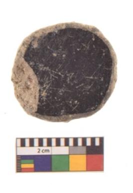 | Description / विवरण | A partially broken specimen of black ware disc with rounded and smooth edge and flat surface. It is having smooth surface areas other side is rough. |