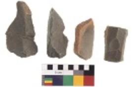 | Description / विवरण | There are n 4 utilized flake cores. There are multidirectional irregular dominant scar pattern on both dorsal and ventral face of the flake cores. Two are tapering at one end and two have sharp edges. |