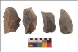 | Description / विवरण | There are n 4 flakes tool; there are flakes tool with prominent flaking marks. It made up of a large flakes with sides trimmed. It is rectangular in shaped. |