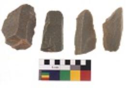 | Description / विवरण | There are n 4 utilized flake cores. There are multidirectional irregular dominant scar pattern on both dorsal and ventral face of the flake cores. Three are tapering at one end and one has sharp edges. |