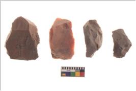| Description / विवरण | Specimen of flake tools with prominent flaking marks. They are made up of a short flakes with sides trimmed. |