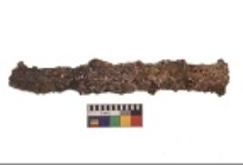 | Description / विवरण | Specimen having elongated rounded body with uniform thickness and highly corroded surface. |