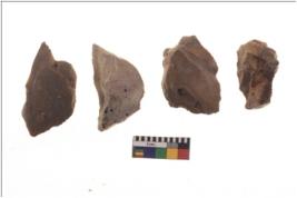 | Description / विवरण | There are n 4 utilized flake cores. There are multidirectional irregular scar pattern on both dorsal and ventral face of the flake cores. One has sharp edges and three have blunted edges. |