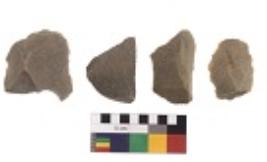 | Description / विवरण | There are n 4 utilized flake cores. There are multidirectional irregular dominant scar pattern on both dorsal and ventral face of the flake cores. Two have blunted edges and two have round edges. |