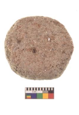 | Description / विवरण | A partially broken specimen of red ware disc with rounded and smooth edge and flat surface. It is having smooth surface areas other side is rough. |