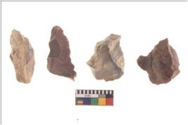 | Description / विवरण | Specimen of flake tools with prominent flaking marks. They are made up of a short flakes with sides trimmed. |