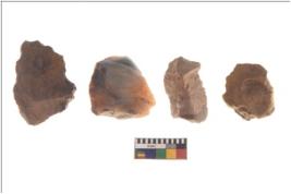 | Description / विवरण | There are n 4 utilized flake cores. There are multidirectional irregular scar pattern on both dorsal and ventral face of the flake cores. One has sharp edges and three have blunted edges. |